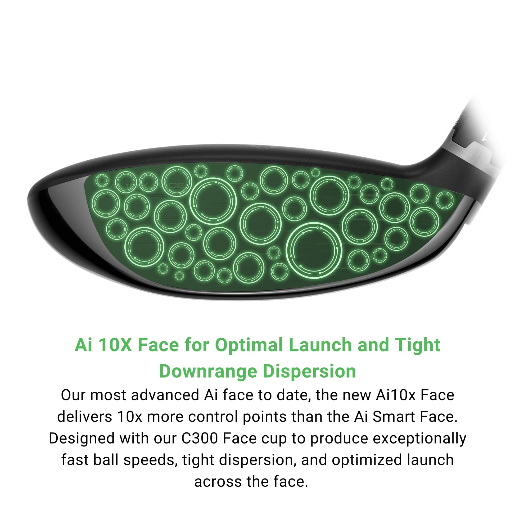 - Ai 10X Face for Optimal Launch and Tight Downrange Dispersion. Our most advanced Ai face to date, the new Ai10x Face delivers 10x more control points than the Ai Smart Face. Designed with our C300 Face cup to produce exceptionally fast ball speeds, tight dispersion, and optimized launch across the face.