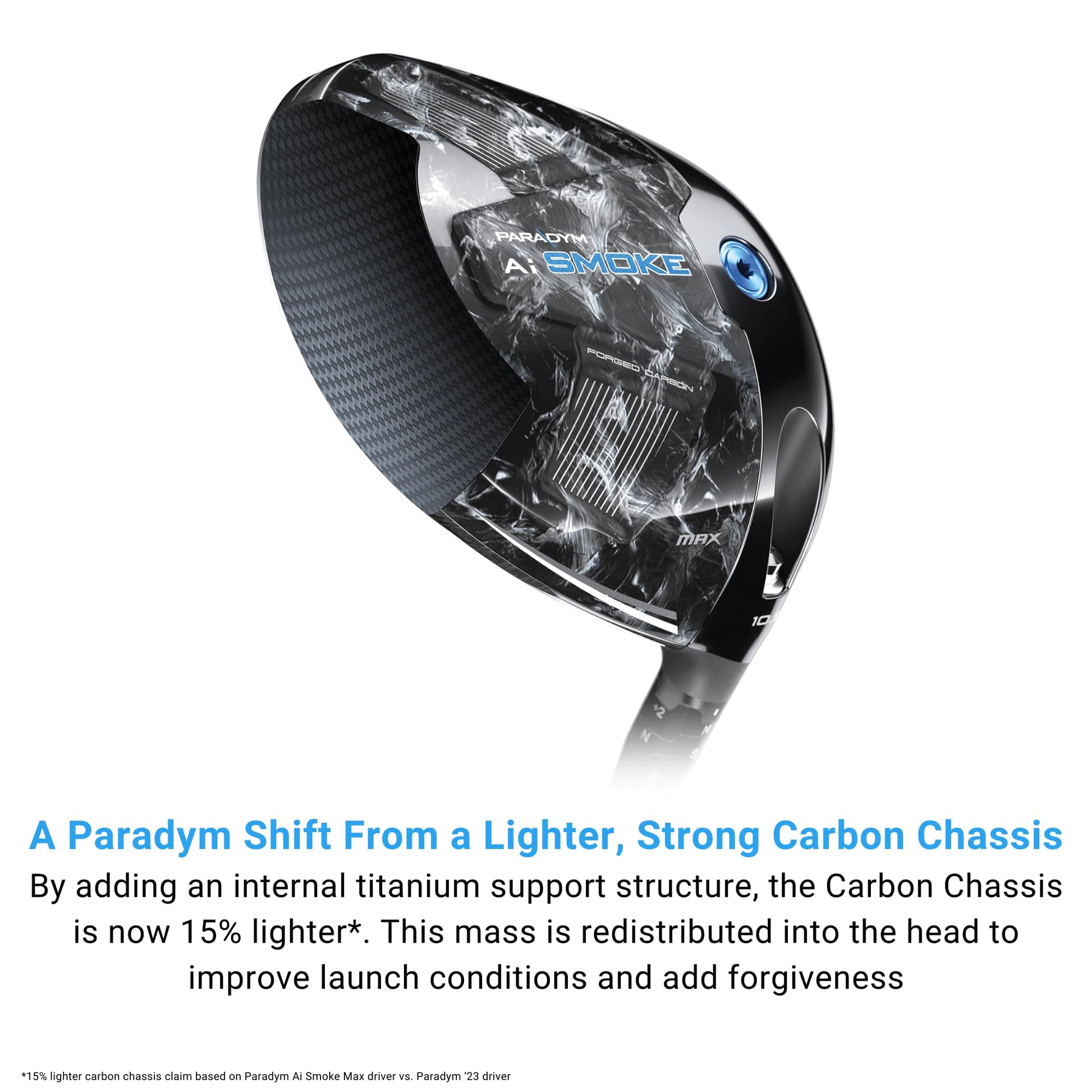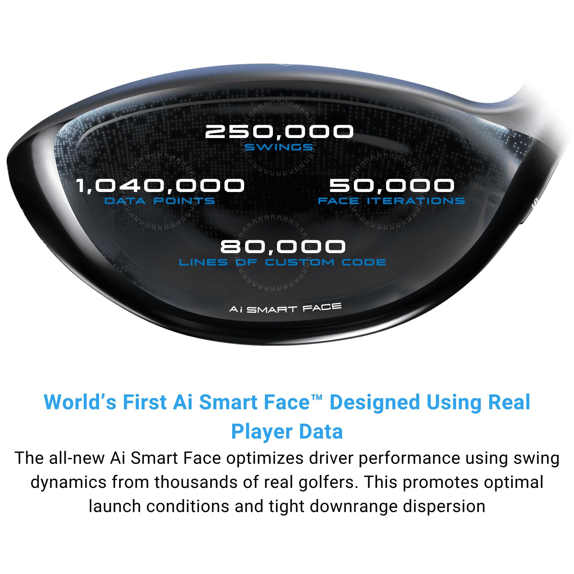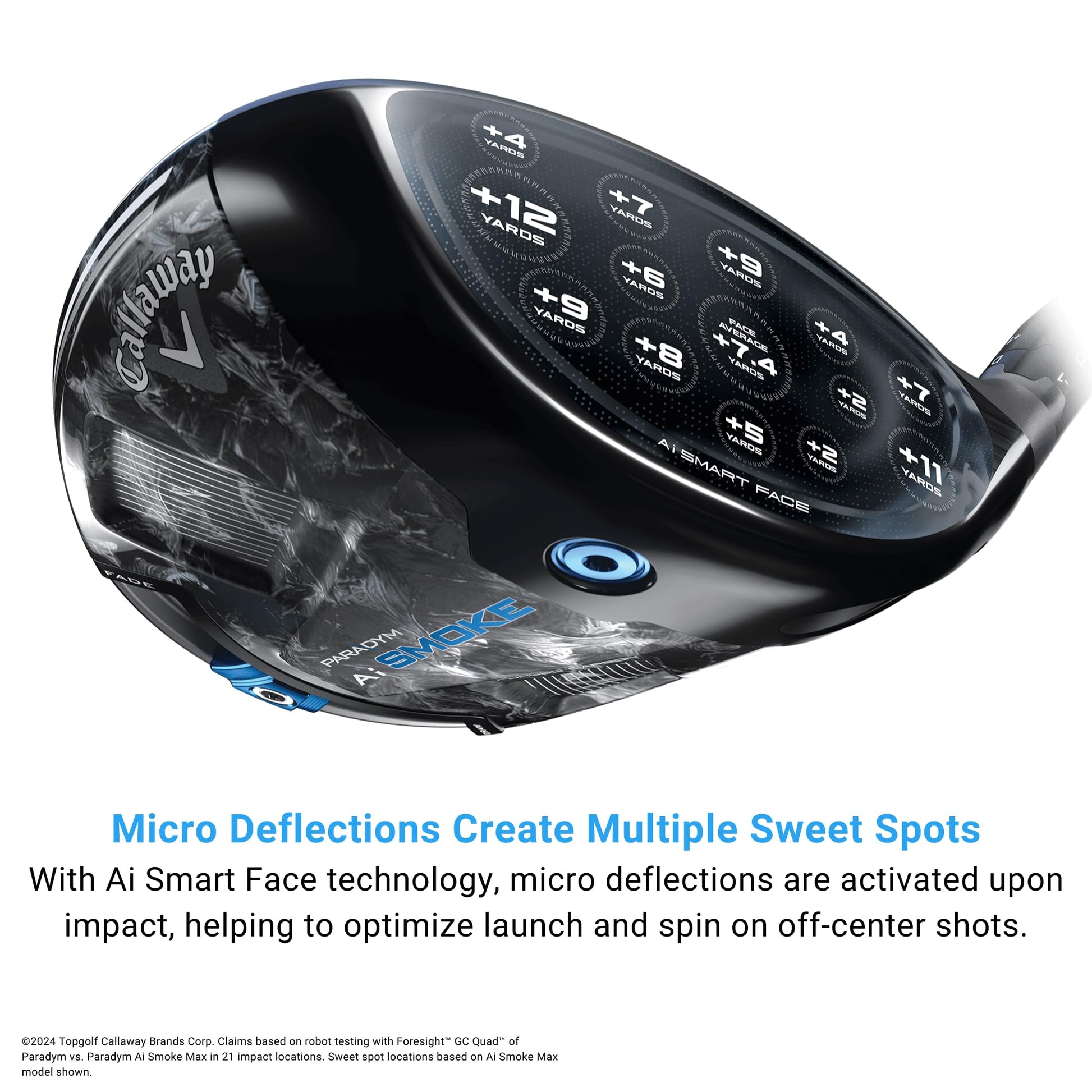 Details: The new Paradym Ai Smoke driver represents a quantum leap forward in Callaway’s Ai journey. This new family of drivers feature the most sophisticated driver face in Callaway history, the Ai Smart Face™. This face uses real player data and advanced machine learning to create a series of sweet spots all over the face