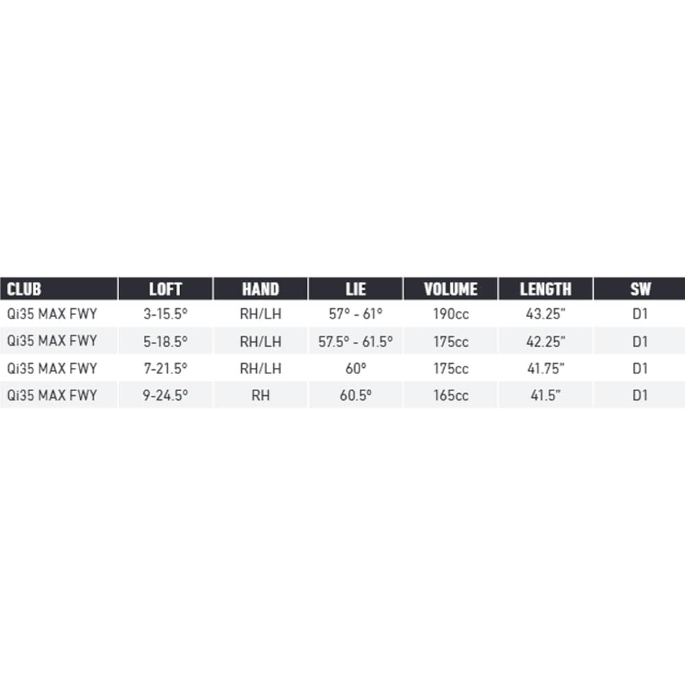- OUR LARGEST ADDRESS SHAPE creates our easiest to launch and most forgiving fairway in the Qi35 lineup. Including Twist Face, Thru-Slot Speed Pocket,4° loft sleeve and Infinity Carbon Crown provide the ultimate suite of technologies.